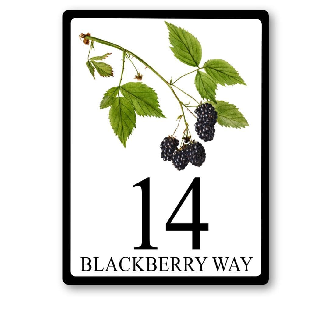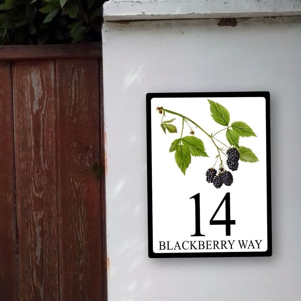 If you love blackberries then our Blackberry house or cottage sign is designed with you in mind. Featuring a vintage image of a blackberry sprig, the sign will make a vivid first impression at the front door with the luscious fruits and delicate leaves. (Ignore the thorns - they're barely visible!)