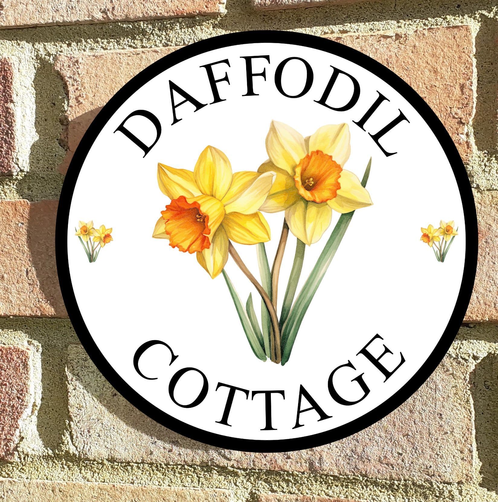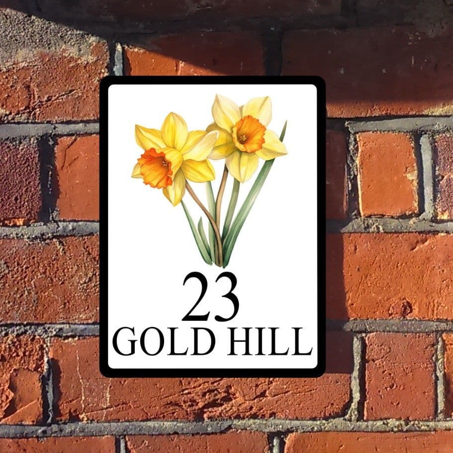 The Daffodils house sign is printed on white glossy aluminium to give excellent colour reproduction. It is weatherproof, fade resistant and comes with a five-year guarantee. Our signs are printed by dye sublimation, which means the image is absorbed into the surface of the aluminium rather than sitting on it and doesn't flake or peel off.